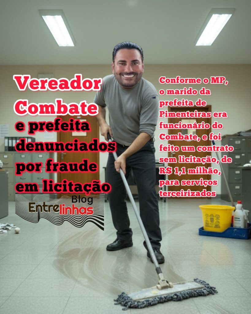 De acordo com o MP, a prefeitura iniciou um processo licitatório, mas o cancelou dois meses depois. O blog Entrelinhas conta com suas palavras que então chegou o vereador Marcos Combate. O contratado dele era o marido da prefeita. E a prefeita decidiu fazer uma contratação emergencial da empresa do combate. Pisoteou a lei das licitações.