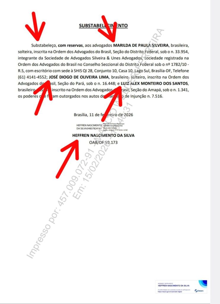 Irlan colocou outros advogados no “negócio”. O sócio de Irlan, Hefran Nascimento da Silva, assinou substabelecimentos a advogados de fora de Rondônia. E os índios estavam achando que Irlan e Marcio Welder são amigos.