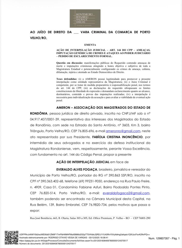 A Associação dos Magistrados de Rondônia move uma ação contra Everaldo Fogaça. Ele disse que que ‘no TJ só tem bandido e corrupto’ e que ‘não salva um juiz’.