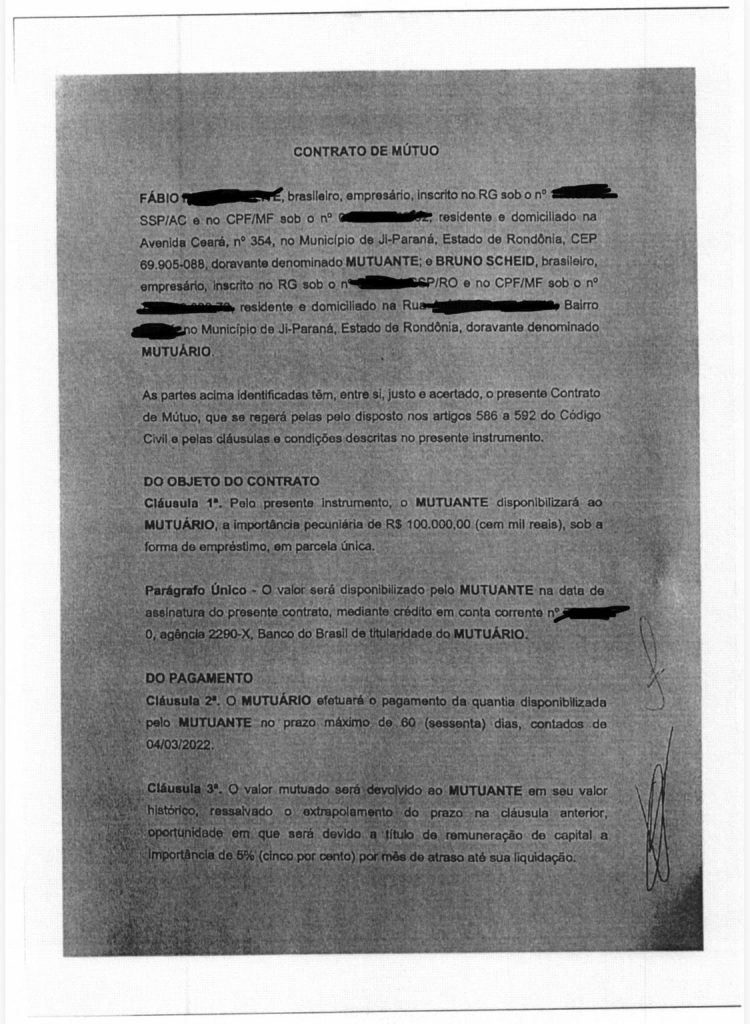 E aparentemente Bruno Scheid gosta de R$ 100 mil. O blog Entrelinhas também conseguiu cópia de outro documento, falando de um empréstimo nesse valor.