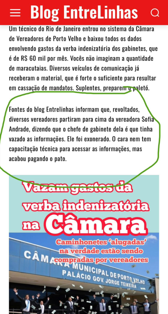 Na postagem anterior do Entrelinhas não foi citada a existência de nenhuma irregularidade envolvendo a vereadora Sofia Andrade, mas alguns sites de notícias voltaram o foco para ela. Aparentemente estão a serviço de quem chamou a atenção da Delegacia de Repressão ao Crime Organizado (Draco) e do Ministério Público.