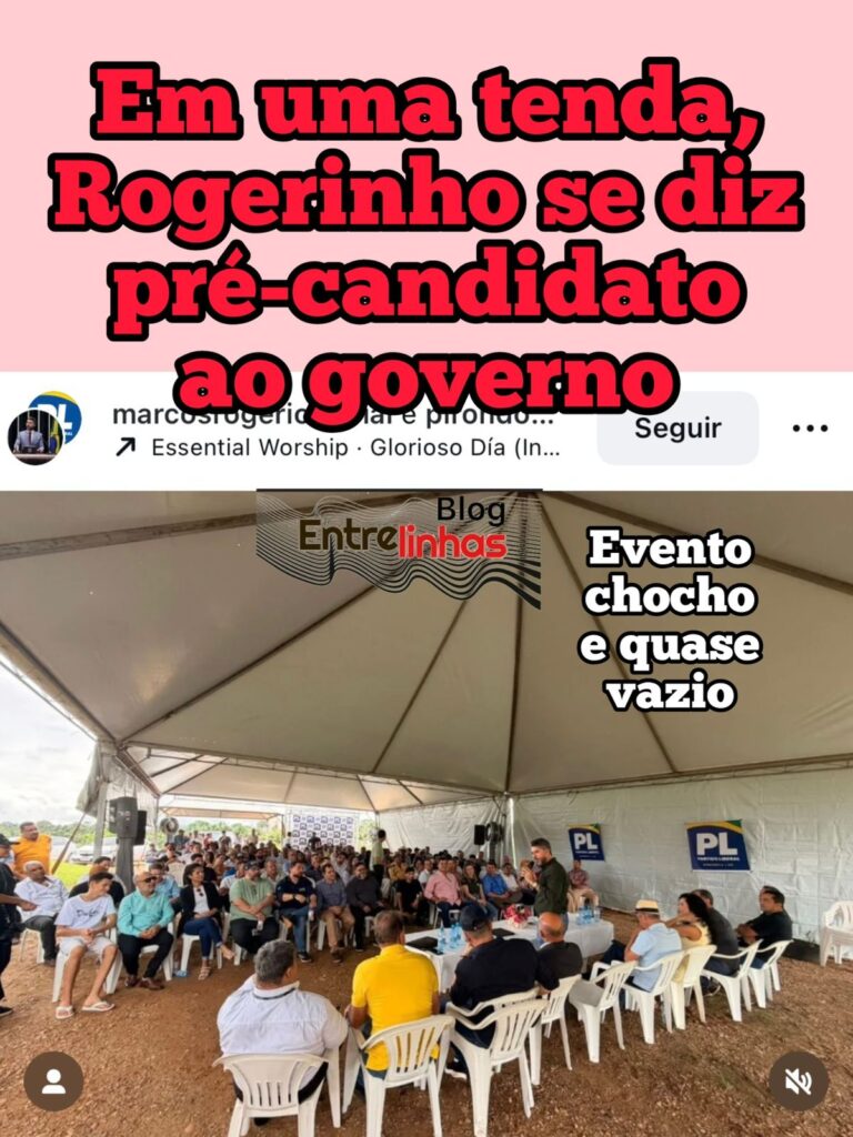 O senador Marcos Rogério (PL-RO) se lançou pré-candidato ao governo de Rondônia. A solenidade aconteceu em Ji-Paraná, debaixo de uma tenda, onde estavam aproximadamente cem pessoas. Evento chocho, onde o parlamentar discursou para quase ninguém.