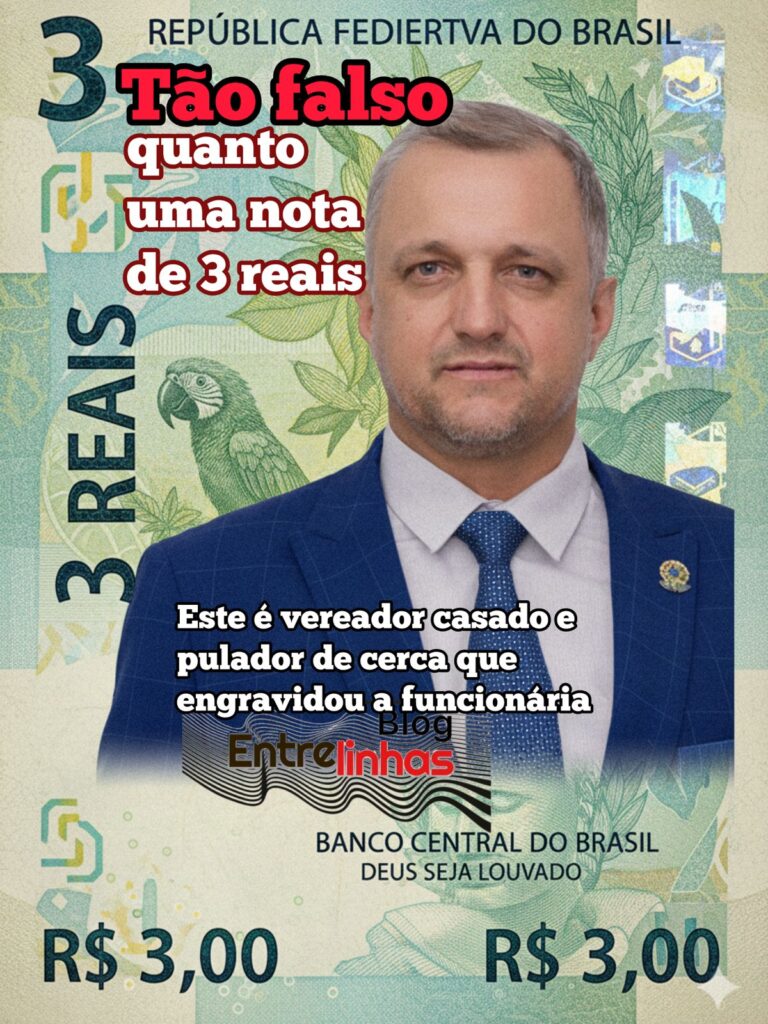 E ele costuma dar uma de bravo. Ameaçou administradores de um grupo de WhatsApp. Falou grosso. Obrigou a ter retratação. Na conversa com a equipe do blog Entrelinhas ele foi bem mansinho e mentiu, dizendo que não tinha nada a ver com a confusão. Como já foi dito, o vereador é tão falso quanto uma nota de três reais.